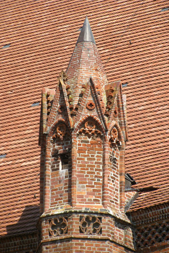Kiedy robiłem to zdjęcie (mam zoom 12x choć tu nie ma maksymalnego zbliżenia) to pomyślałem, że jotwu może swoim nowym aparatem (zoom 30x) liczyć mrówki na dachu kościoła w Nowym Warpnie. Skąd miałyby się tam wziąć mrówki? Np. kiedy ktoś posmaruje wieżę miodem ;)